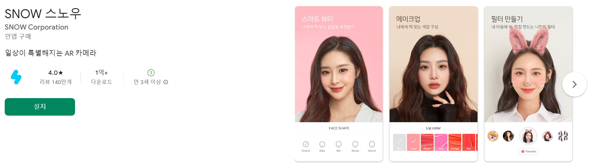 이러한 기능들을 통해 눈을 예쁘게 만들어주고, 얼굴도 보정해 주어 많은 사람들이 스노우(Snow) 앱을 선호하고 사용하고 있습니다.