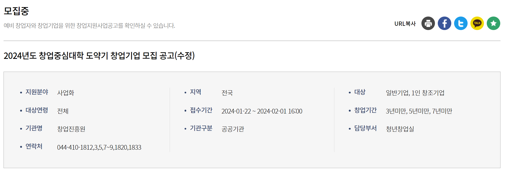 2024년도 창업중심대학 도약기 창업기업 모집 공고(수정)