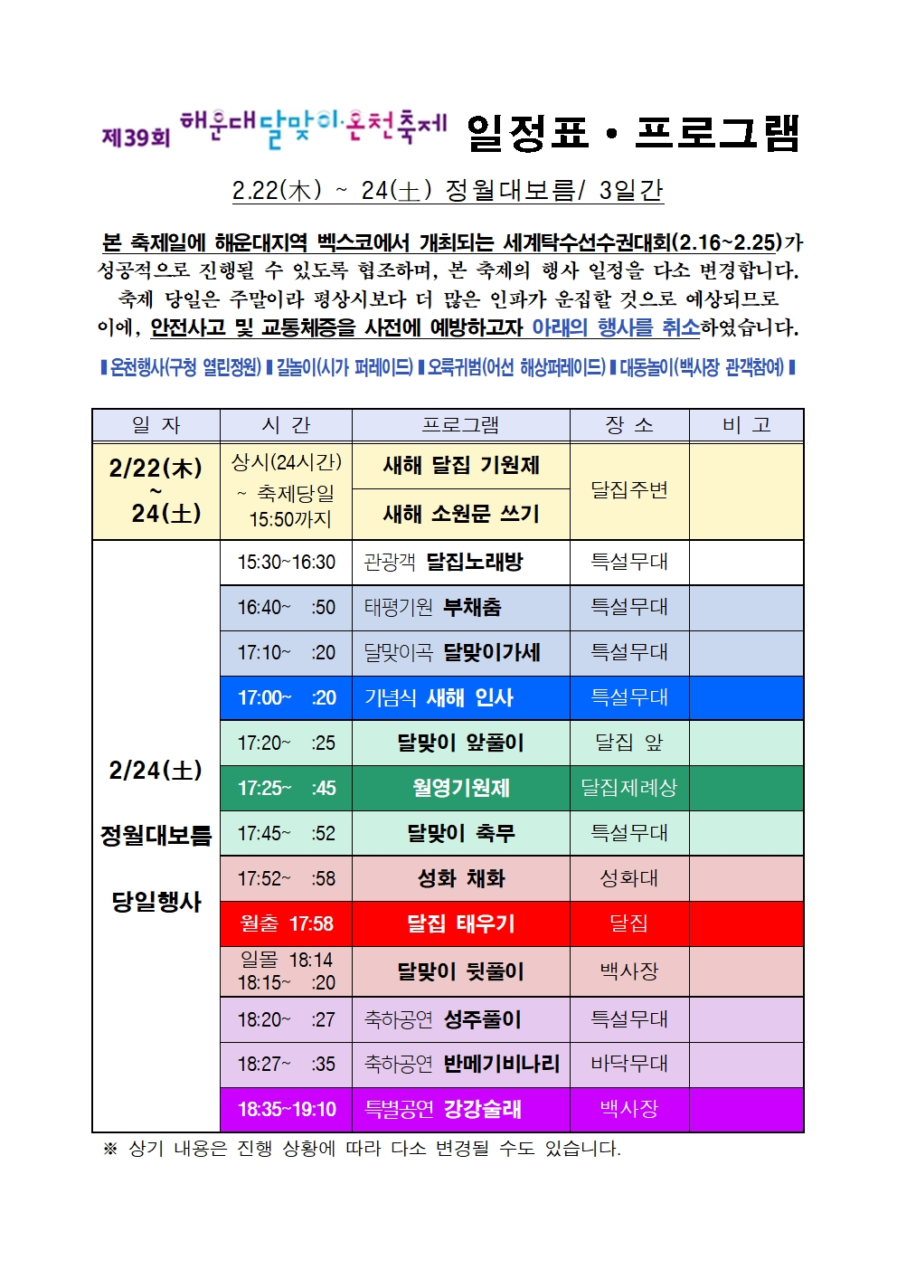 민속 축제를 계승·재현하는‘제39회 해운대달맞이온천축제’가 개최됩니다