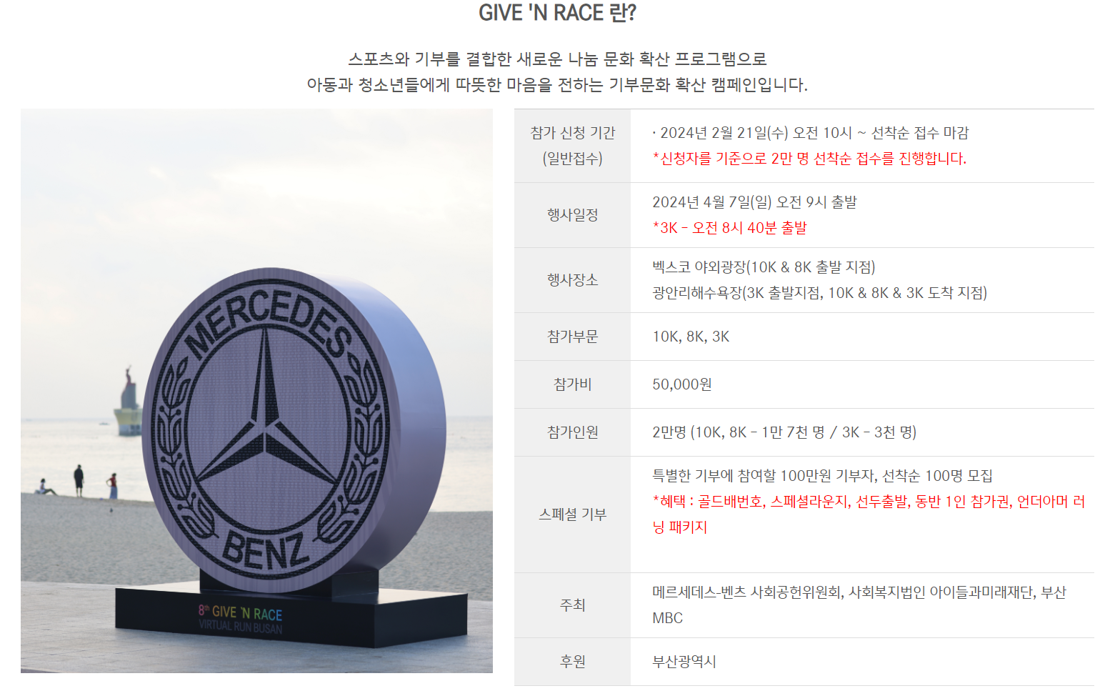 제11회 기브앤 레이스의 접수가 선착순 2만 명 마감되었습니다.