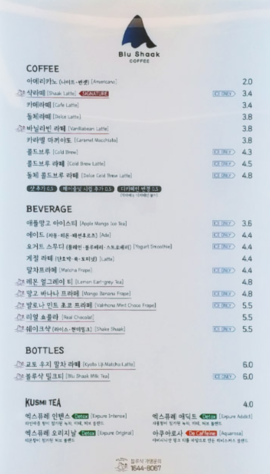 그러고 보니 지난번에 모임에서 동료선생님이 추천해준 샥라떼가 메뉴